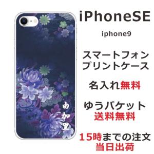 - iPhone SE 第2世代 らふら 名入れ スマホケース 和柄 和花青紫グラデ