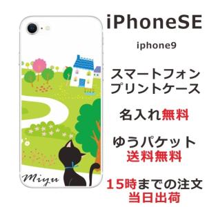 - iPhone SE 第2世代 らふら 名入れ スマホケース 黒猫 お散歩