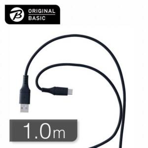- ORIGINALBASIC USB-Ato Type-Cケーブル 1m シリコーン素材 やわらかい 抗菌仕様 SIAA認証 ブラック OB-UCS2AC100-K
