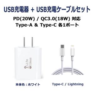 - USB充電器 Type-C/PD/65W Type-A/QC3.0/18W PPS対応 3ポート同時充電 ホワイト Lightning充電ケーブル付 1年保証[M便 1/3]