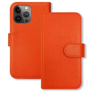 iPhone13 Pro Max スマホケース(オレンジ)手帳型 PUレザー 無地 ケース 横開き カード収納 カバー