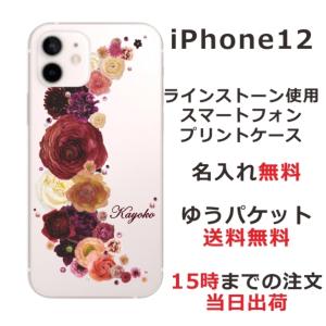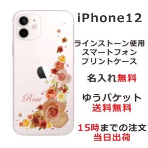 - iPhone12 ケース アイフォン12 カバー ラインストーン かわいい フラワー 花柄 らふら 名入れ 押し花風 バラ