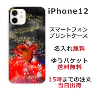 - iPhone12 ケース アイフォン12 カバー らふら 名入れ 和柄 鳳凰赤