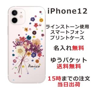 - iPhone12 ケース アイフォン12 カバー ラインストーン かわいい フラワー 花柄 らふら 名入れ 押し花風 ブーケフラワー