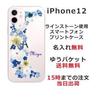 - iPhone12 ケース アイフォン12 カバー ラインストーン かわいい フラワー 花柄 らふら 名入れ 押し花風 クレシェンドブルー