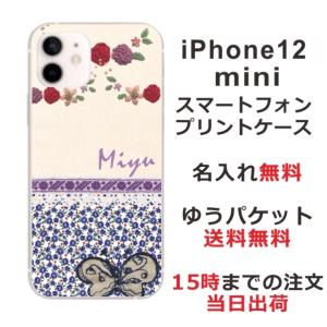 - iPhone12 Mini ケース アイフォン12ミニ カバー らふら 名入れ 蝶 パープルフラワー