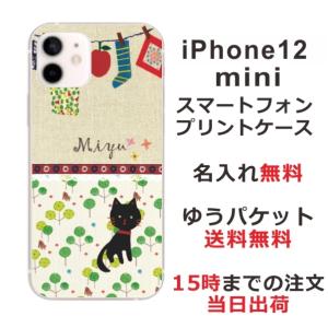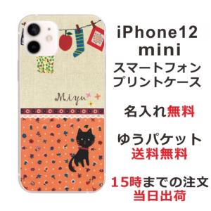 - iPhone12 Mini ケース アイフォン12ミニ カバー らふら 名入れ 黒猫 洗濯物