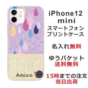 - iPhone12 Mini ケース アイフォン12ミニ カバー らふら 名入れ 北欧デザイン パープル しずく
