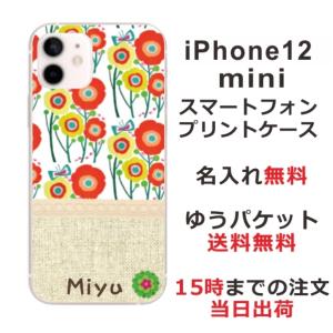 - iPhone12 Mini ケース アイフォン12ミニ カバー らふら 名入れ 北欧デザイン フラワー オレンジ