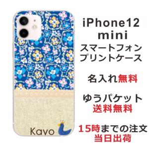 - iPhone12 Mini ケース アイフォン12ミニ カバー らふら 名入れ 北欧デザイン フラワー ブルー