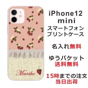 - iPhone12 Mini ケース アイフォン12ミニ カバー らふら 名入れ 北欧デザイン イチゴ