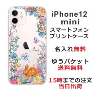 - iPhone12 Mini ケース アイフォン12ミニ カバー らふら 名入れ お花畑 ウサギ