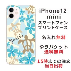 - iPhone12 Mini ケース アイフォン12ミニ カバー らふら 名入れ ハワイアン ブルー ホヌ