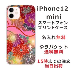 - iPhone12 Mini ケース アイフォン12ミニ カバー らふら 名入れ 和柄 和花ピンク