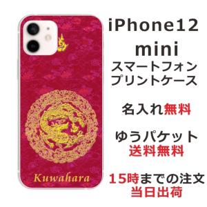 - iPhone12 Mini ケース アイフォン12ミニ カバー らふら 名入れ 和柄 円龍赤