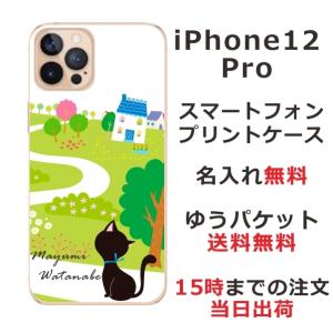 - iPhone12 Pro ケース アイフォン12プロ カバー らふら 名入れ 黒猫 お散歩