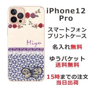 - iPhone12 Pro ケース アイフォン12プロ カバー らふら 名入れ 蝶 パープルフラワー