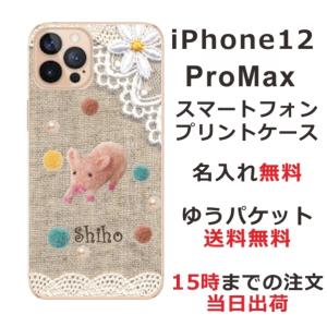 - iPhone12 Pro Max ケース アイフォン12プロマックス カバー らふら 名入れ コットンレース風 ブタ