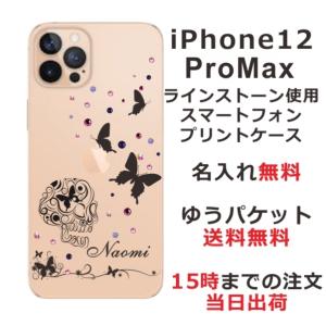 - iPhone12 Pro Max ケース アイフォン12プロマックス カバー ラインストーン かわいい らふら スカルバタフライ
