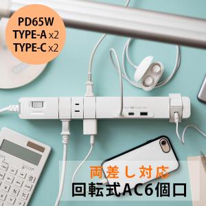 - 延長コード PD65W おしゃれ Type-C 電源タップ USB 回転 6個口 安全 プレゼント ギフト お部屋づくり インテリア 木目調 GaN搭載 便利 雷ガード タコ足 Fargo