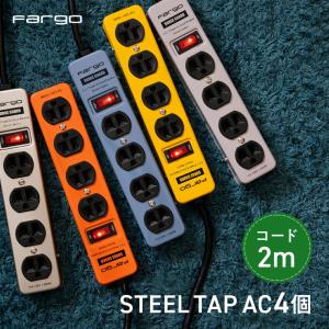 - 電源タップ おしゃれ Fargo ファーゴ STEEL TAP AC4個口 1列 コード2m イエロー シルバー ライトグレー ブルー オレンジ