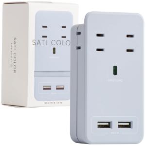 - Fargo SATI COLOR 壁挿し 電源タップ コードレス 急速充電 USB 4.2A AC4個口 全14色 スマホスタンド スモーキーブルー
