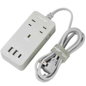 - Fargo 電源タップ SATI COLOR CORD USB PD30W TYPE-C TYPE-A AC4個口 1.8m 全9色 ライトグレ