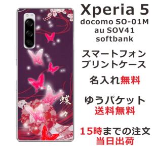 - Xperia 5 SO-01M SOV41 901so エクスペリア5 らふら 名入れ スマホケース 和柄 紫闇光蝶