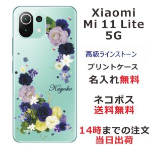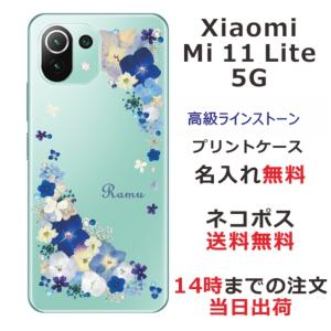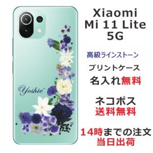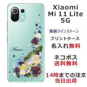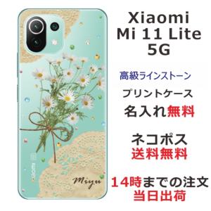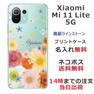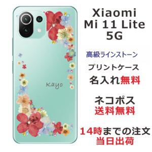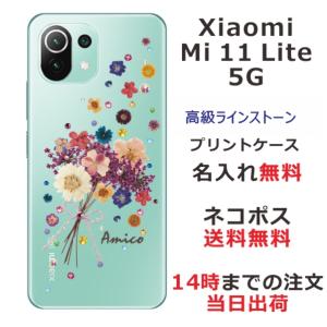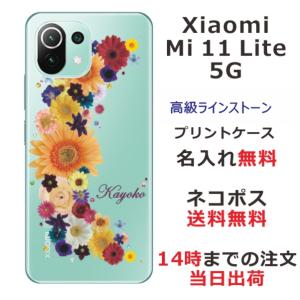 - Xiaomi Mi 11 Lite 5G ケース シャオミ M11ライト 5G カバー ラインストーン かわいい フラワー 花柄 らふら 名入れ 押し花風 春花