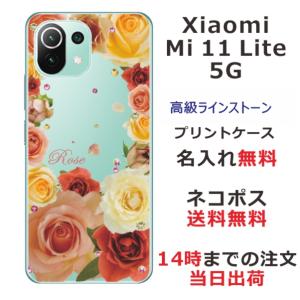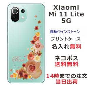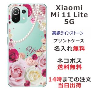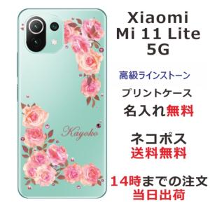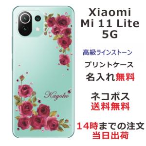 - Xiaomi Mi 11 Lite 5G ケース シャオミ M11ライト 5G カバー ラインストーン かわいい フラワー 花柄 らふら 名入れ 押し花風 バラ
