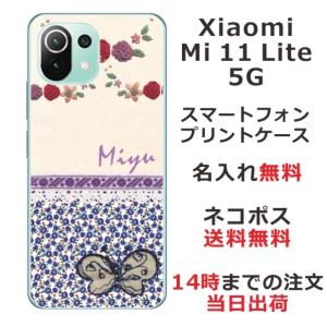 - Xiaomi Mi 11 Lite 5G ケース シャオミ M11ライト 5G カバー らふら 名入れ 蝶 パープルフラワー