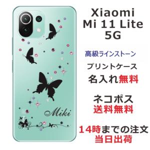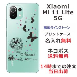 - Xiaomi Mi 11 Lite 5G ケース シャオミ M11ライト 5G カバー ラインストーン かわいい らふら 名入れ スリーバタフライ