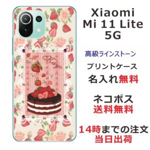 - Xiaomi Mi 11 Lite 5G ケース シャオミ M11ライト 5G カバー ラインストーン かわいい らふら 名入れ ストロベリーケーキ