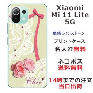 - Xiaomi Mi 11 Lite 5G ケース シャオミ M11ライト 5G カバー ラインストーン かわいい らふら 名入れ ローズレース