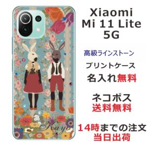 - Xiaomi Mi 11 Lite 5G ケース シャオミ M11ライト 5G カバー ラインストーン かわいい らふら 名入れ うさぎ カップル