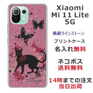 - Xiaomi Mi 11 Lite 5G ケース シャオミ M11ライト 5G カバー ラインストーン かわいい らふら 名入れ 黒猫 蝶