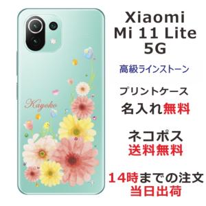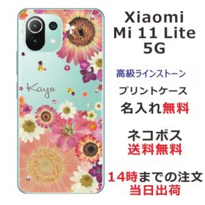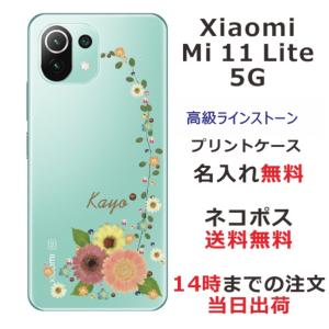 - Xiaomi Mi 11 Lite 5G ケース シャオミ M11ライト 5G カバー ラインストーン かわいい らふら 名入れ ふんわりフラワー インコ