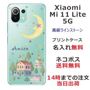 - Xiaomi Mi 11 Lite 5G ケース シャオミ M11ライト 5G カバー ラインストーン かわいい らふら 名入れ 月 街