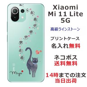 - Xiaomi Mi 11 Lite 5G ケース シャオミ M11ライト 5G カバー ラインストーン かわいい らふら 名入れ 黒猫