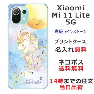 - Xiaomi Mi 11 Lite 5G ケース シャオミ M11ライト 5G カバー ラインストーン かわいい らふら 名入れ ユニコーン