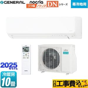 - 工事費込みセット ゴク暖 nocria DNシリーズ ルームエアコン 冷房/暖房:10畳程度 株式会社ゼネラル AS-DN285S2-W 高さ250mm 暖房強化型スリムモデル 寒冷地向け