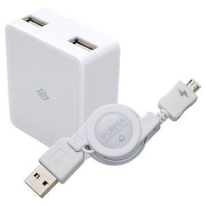 - USB 2ポート充電器 USBケーブルセット PLANEX UFS-ARB-W3-WH【メール便B利用可】