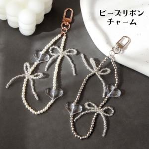 ビーズリボン ハート ストラップ チャーム スマホ 携帯 おしゃれ かわいい ビーズ スマホストラップ バッグチャーム プレゼント フラワーリング AGK0046