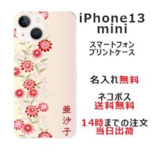 - iPhone13 mini アイフォン13ミニ らふら 名入れ スマホケース 和柄 花 撫子