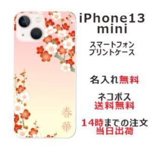 - iPhone13 mini アイフォン13ミニ らふら 名入れ スマホケース 和柄 花 梅