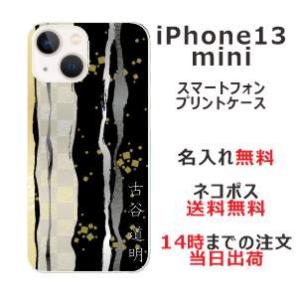 - iPhone13 mini アイフォン13ミニ らふら 名入れ スマホケース 和柄 花 モダン漆黒金箔
