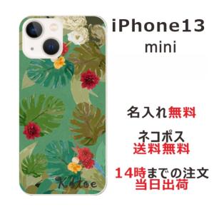 - iPhone13 mini アイフォン13ミニ らふら 名入れ スマホケース ハワイアン ハワイアングリーン