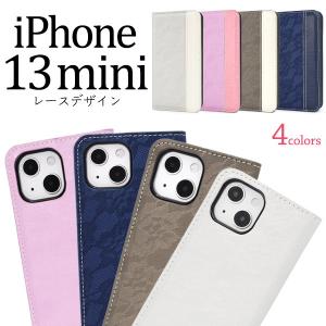 iPhone13 mini ケース 手帳型 レースデザイン カバー アイホン アイフォン 13 ミニ スマホケース