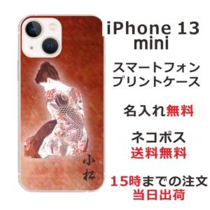 - iPhone13 mini アイフォン13ミニ らふら 名入れ スマホケース 和柄 艶女昇鯉