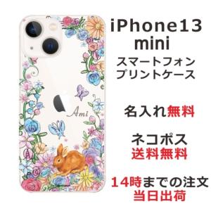 - iPhone13 mini アイフォン13ミニ らふら 名入れ スマホケース お花畑 ウサギ